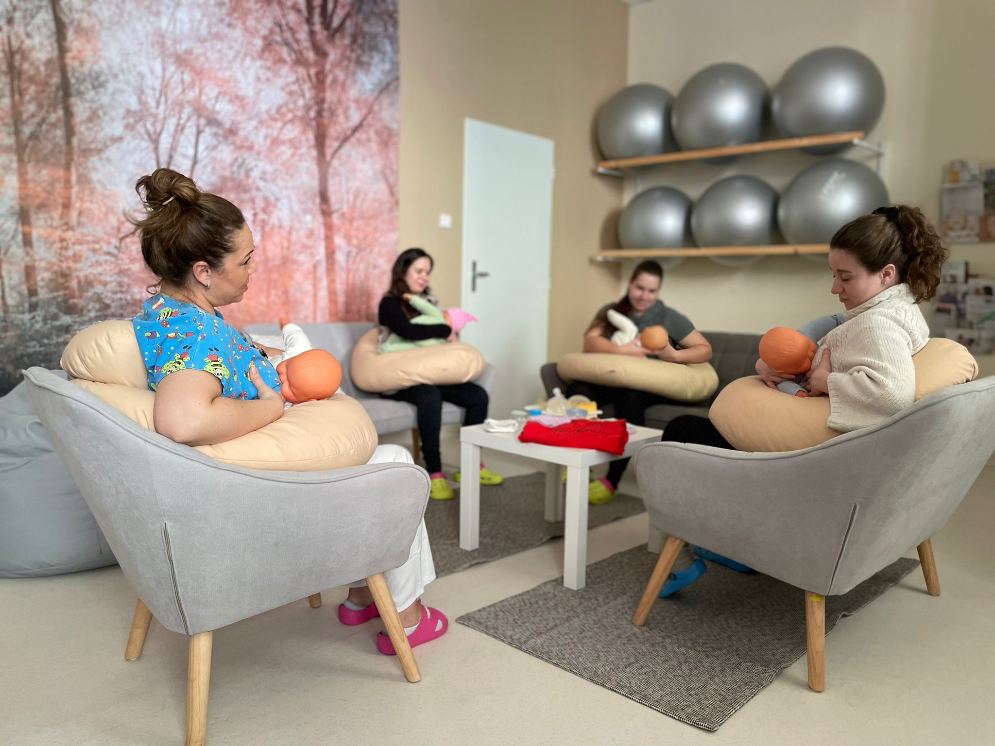 - Handling miminek: Ukážeme, jak správně zvedat, nosit nebo přebalovat, aby se miminko vyvíjelo symetricky a bez přetěžování.